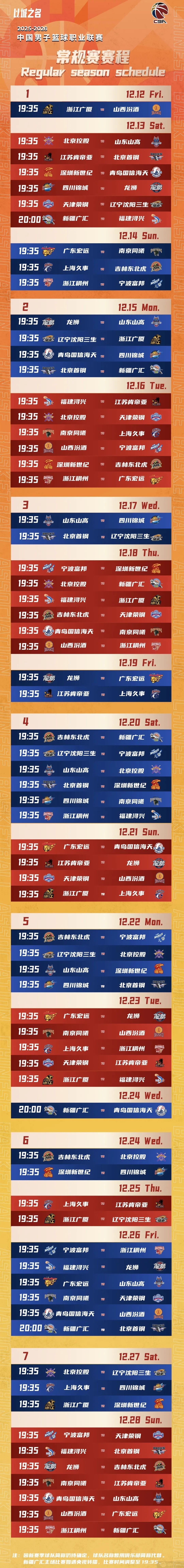 CBA新赛季赛程时间对阵表 12月12日正式揭幕