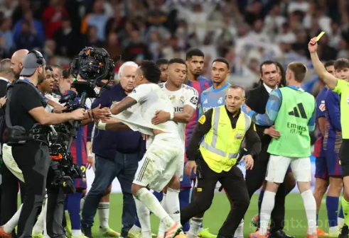 维尼修斯在被工作人员拉回球员通道时,因回应某句言论,突然转身冲向亚马尔,试图与其对峙,最终被四名皇马工作人员强行拦住。巴萨球员拉菲尼亚试图上前介入时,被皇马球员巴尔韦德阻止。为控制局势,巴萨临时主帅马库斯·索尔格、比赛代表卡莱斯·纳瓦尔及皇马守门员教练路易斯·略皮斯均加入劝阻行列,现场警方最终也介入,将两队人员强行分开。