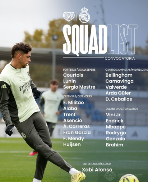 球天下11月9日讯 北京时间今日23:15,西甲联赛第12轮将会进行一场比赛,皇家马德里将在客场挑战巴列卡诺。本场比赛对于皇家马德里来说很关键,在周中的欧冠联赛输球之后,球队急需一场胜利来调整自己的状态,同时因为目前西甲联赛的争冠形势也很激烈,因此皇家马德里需要力争取胜保持榜首的位置,本场比赛面对排名联赛中游的巴列卡诺,皇家马德里将全力争胜。在本场比赛开始之前,皇家马德里公布了球队的比赛名单。