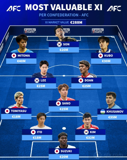 德转发布亚洲球员最贵阵容 日韩球员几乎包揽名单