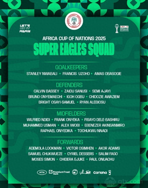 尼日利亚公布非洲杯名单 阵容大部分球员效力欧洲联赛