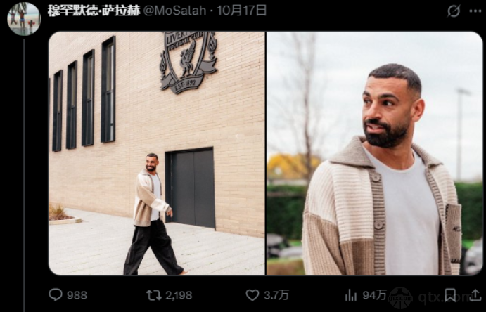 这一行为被外界解读为萨拉赫对利物浦的不满或可能酝酿离队的信号。在10月23日凌晨的欧冠联赛阶段第3轮比赛中,利物浦客场5-1大胜法兰克福,但萨拉赫此役是在下半场第74分钟才替补出场。他在比赛尾声阶段的一次进攻中,选择自己打门而忽视了面对空门的队友维尔茨,导致诸多红军球迷在社媒发文批评他。