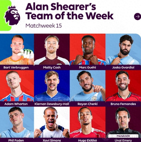 球天下12月10日讯 英超官方公布了联赛第15轮比赛的最佳阵容,在这份由希勒评选的最佳阵容中,曼城有多名球员入选,也是入选球员最多的队伍,另外阵容中还包括了曼联与热刺的进攻关键球员B费与哈维西蒙斯,这几名球员都在本轮比赛展现出了优秀的表现,帮助球队获得胜利。