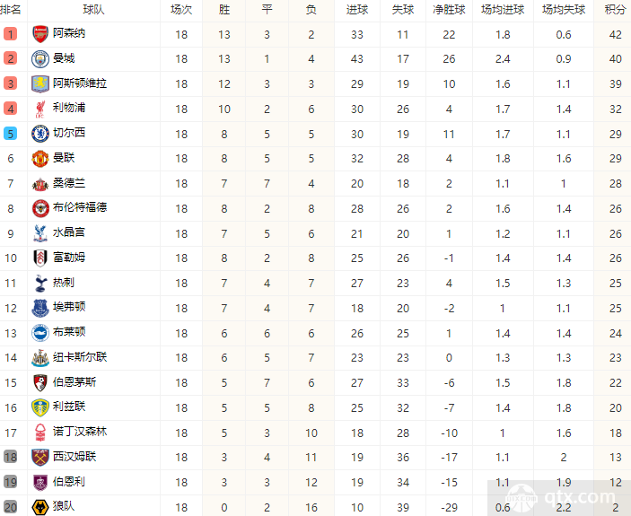 球天下12月29日讯 英超第18轮比赛目前已经全部结束,在经过本轮比赛的交锋之后,有一些球队的积分与排名发生变化,比如本轮比赛获得胜利的利物浦、曼联等球队排名获得进步,而输球的切尔西排名有所下降。在最吸引关注的争冠集团中,三支球队都在本轮比赛赢球,因此前三名的位置没有变化,几支球队依旧保持很小的分差,本赛季的英超冠军竞争也是非常激烈。