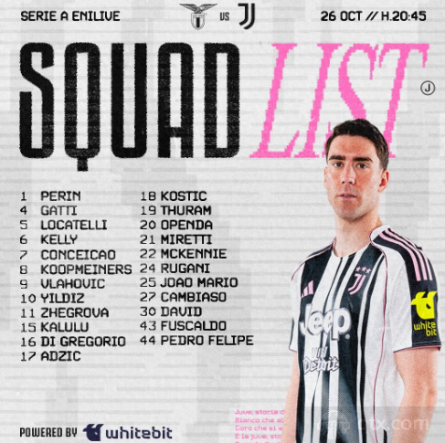 在尤文图斯本场比赛的名单中,球队的多名关键球员入选。在锋线位置上,球队主力弗拉霍维奇、伊尔迪兹等球员在列,其中弗拉霍维奇与伊尔迪兹可以说是目前这支尤文图斯锋线最关键的球员。弗拉霍维奇在前几个赛季加盟球队之后虽然没有拿出顶级的表现,不过也保持着不错的进球效率,球员在锋线上能够利用自己不错的射门以及冲击力帮助球队创造机会,本赛季球员也已经参与了多粒进球,是球队进球数最多的球员,由此可见弗拉霍维奇的实力。伊尔迪兹作为尤文图斯青训的球员,在近两个赛季也有着出色的表现,作为球队的锋线主力,伊尔迪兹出色的速度以及技术能力使他能够利用突破帮助球队获得机会,伊尔迪兹也是本赛季球队参与进球最多的球员,是球队的主要进攻点。本场比赛面对拉齐奥,尤文图斯预计会安排这两名锋线主力继续首发,从而保证球队的进攻。