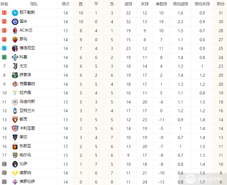 球天下12月8日讯 意甲联赛第14轮目前已经结束了大部分比赛,其他部分比赛将会在北京时间明日凌晨进行。在本轮已经结束的多场比赛中,那不勒斯、国际米兰这两支豪门球队获得了比赛的胜利,拉齐奥获得了平局,罗马、尤文图斯以及佛罗伦萨都输掉了比赛,目前积分榜的排名也是出现了一些变化。其中那不勒斯赢球后升至榜首,国际米兰紧随其后,尤文图斯则是继续在欧战区之外。