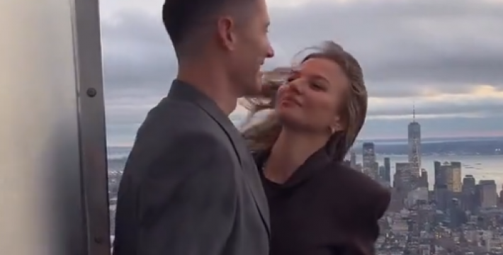 人生赢家,莱万和妻子在纽约大厦上瞭望城市